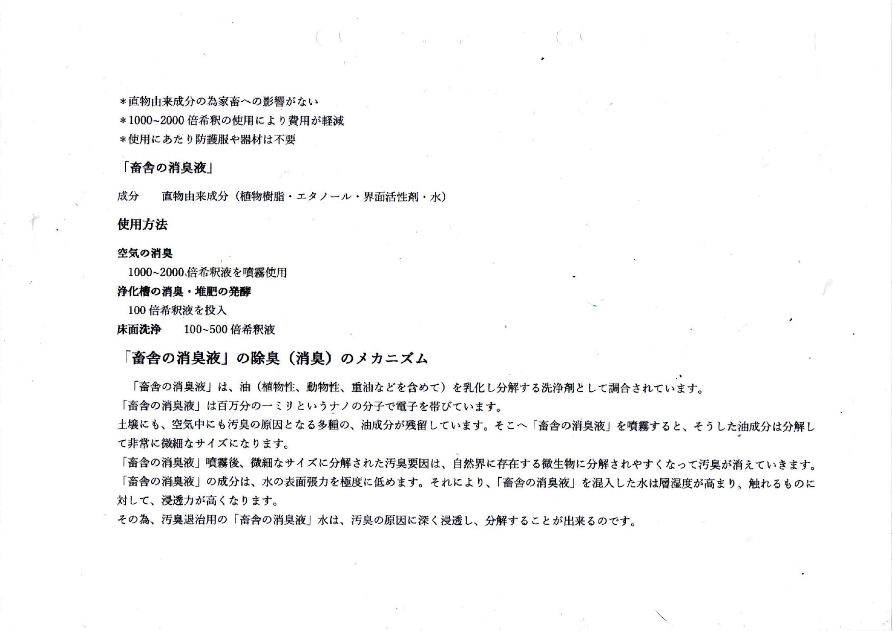 畜舎の消臭液